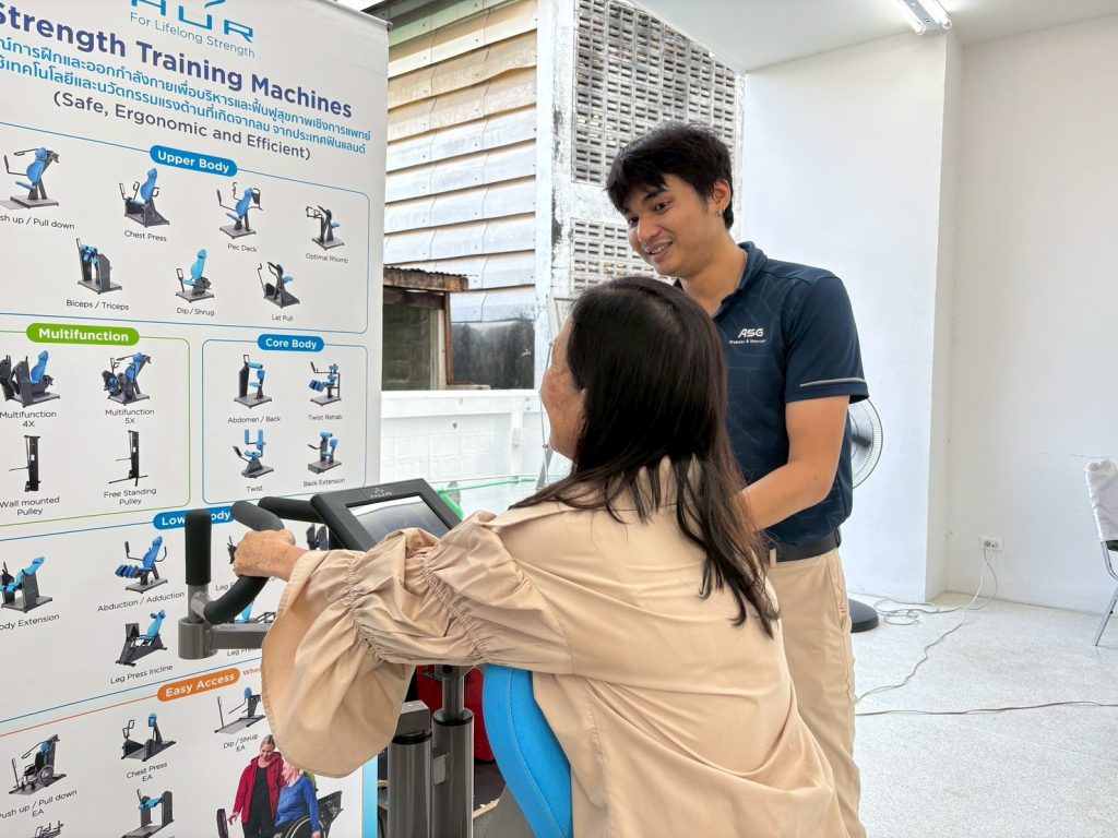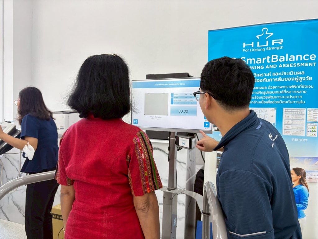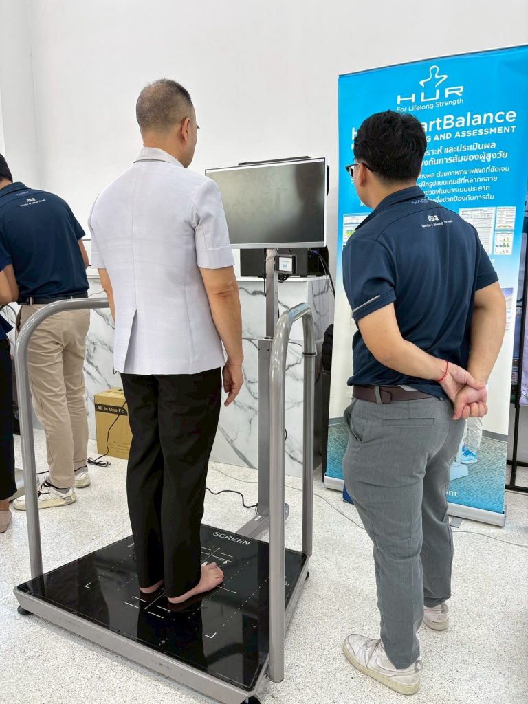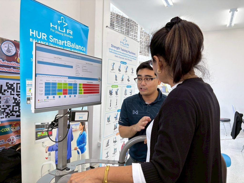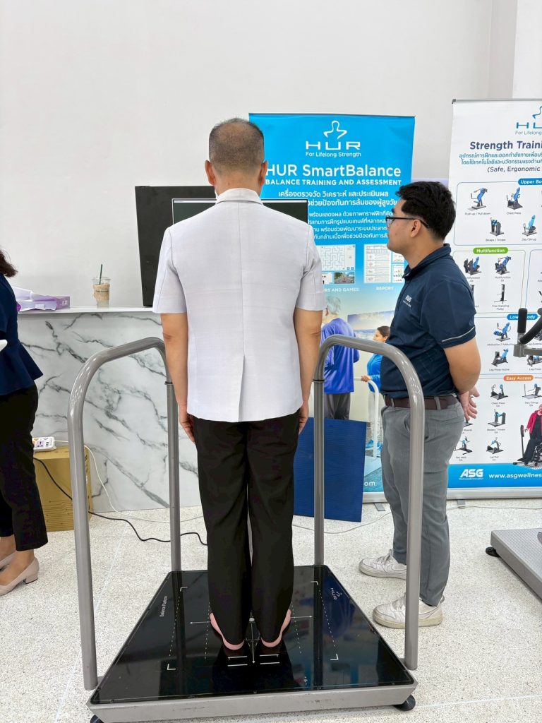ซึ่งบรรยากาศภายในบูธ ASG มีความครึกครื้นเป็นอย่างมาก เพราะได้นำอุปกรณ์ HUR SmartBalance เพื่อฝึกและทดสอบ Balance Testing & Training ซึ่งเป็นเทคโนโลยีตรวจวัดประเมิน และฝึกสมรรถะการทรงตัวป้องกันการล้มในผู้สูงอายุ ซึ่งใช้หลักทฤษฎีทางวิทยาศาสตร์ในการทดสอบสามารถประเมินสถานะความสมดุลของร่างกายปัจจุบันได้อย่างแม่นยำ และ Optimal Rhomb เพื่อฝึกและออกกำลังกาย Upper Body เทคโนโลยีแรงต้านที่เกิดจากลม เพื่อฝึกเพิ่มความแข็งแรงของกล้ามเนื้อ จากประเทศฟินแลนด์ นำไปให้บริการแก่ผู้เข้าร่วมงานในครั้งนี้ ได้รับความสนใจและผลตอบรับที่ดีจากผู้เข้าร่วมงานเป็นจำนวนมากที่ได้เข้ามาทดลองใช้อุปกรณ์