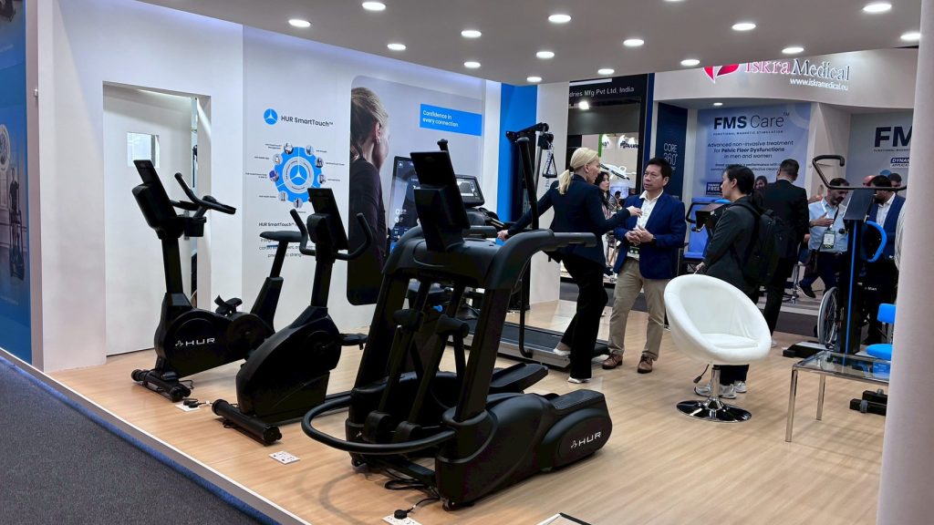 ภายในงานปีนี้ บูธของ HUR ได้ร่วมจัดแสดงนวัตกรรม โดยนำเสนออุปกรณ์การฝึกและออกกำลังกายที่ผสานเทคโนโลยีสมัยใหม่ เพื่อถ่ายทอดแนวคิดโซลูชันด้านการส่งเสริมสุขภาพแบบบูรณาการ ครอบคลุมทั้งการประเมินสมรรถภาพ การฝึกคาร์ดิโอ การเสริมสร้างความแข็งแรงของกล้ามเนื้อ ตลอดจนการฝึกการทรงตัวและการกระตุ้นการทำงานด้านการรับรู้